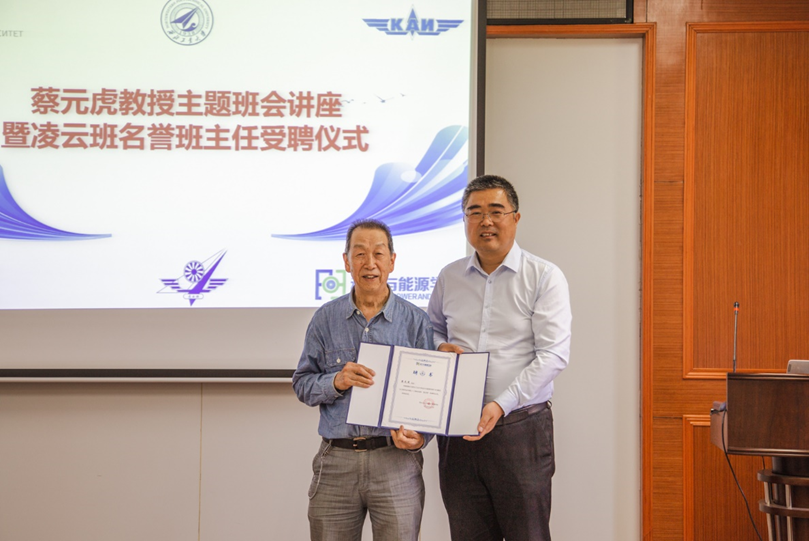 无码动漫 凌云班已招生两届,今年9月,首批凌云班学生将赴俄罗斯留学,开始为期两年的本科联合培养。为进一步激励凌云班全体学生踔厉奋发,笃行不怠,坚定践行航空报国的初心使命, 2022年5月17日下午,无码动漫 在学院楼225会议室举办蔡元虎教授主题班会讲座暨凌云班名誉班主任受聘仪式。无码动漫 闫育周书记,蔡元虎教授,凌云班班主任代表,2020级与2021级凌云班全体学生参与本次活动,活动由黄盛老师主持。