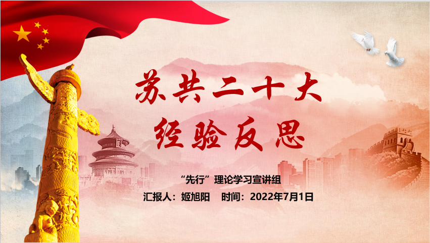 会议第一大部分内容主要有:刘海涌副书记以及兼职辅导员武雯梅致辞;理论宣讲组成员姬旭阳作题为苏共二十大经验反思的宣讲、理论宣讲组成员攸远作题为中国那十年的宣讲以及理论宣讲组成员高婵娟作题为回顾历史上的七一讲话的宣讲。武雯梅学姐的谆谆教诲,宣讲团同学们充满正能量的宣讲,书记的殷切希望与要求,都充满了对党和国家的热爱,对党和国家走过的与未来的道路的自信与肯定,对学生会工作的支持,和对同学们的鼓励与鞭策。