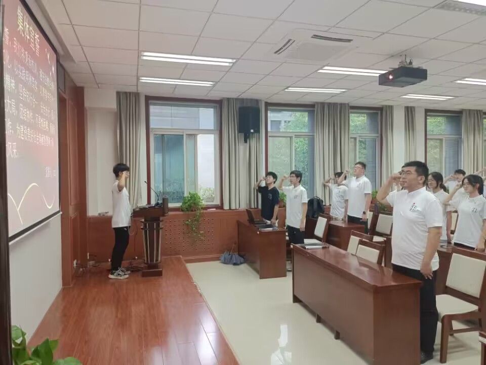 最后,由实践队长司昊宸同学上台带领全体成员集体宣誓。“我宣誓,我们将秉承校训,遵守法律法规,传播先进文化,以实践明辨笃实,以青春书写责任,发扬实践精神,坚持知行合一......。”在大家整齐响亮,带着青春朝气与必胜信念的的口号声中,本次出征仪式圆满结束。
