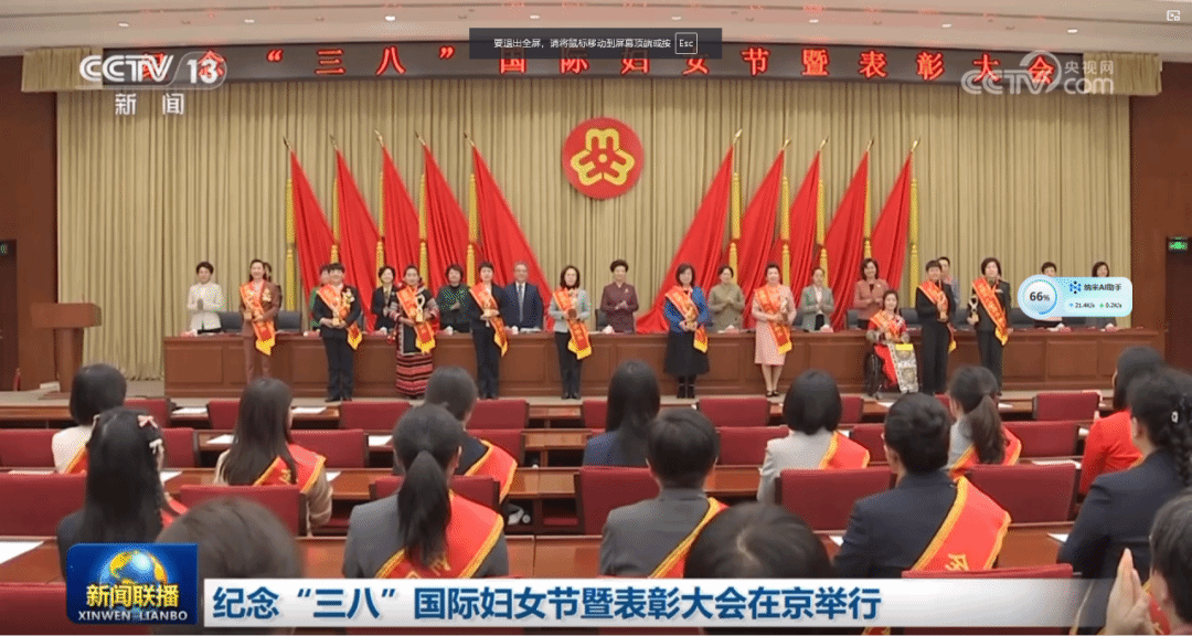 2月28日,全国妇联在京举行纪念“三八”国际妇女节暨表彰大会。国务委员、全国妇联主席谌贻琴出席大会并讲话。全国妇联党组书记、副主席、书记处第一书记黄晓薇主持会议。大会表彰了10名全国三八红旗手标兵、596名全国三八红旗手、395个全国三八红旗集体、599个全国巾帼文明岗。