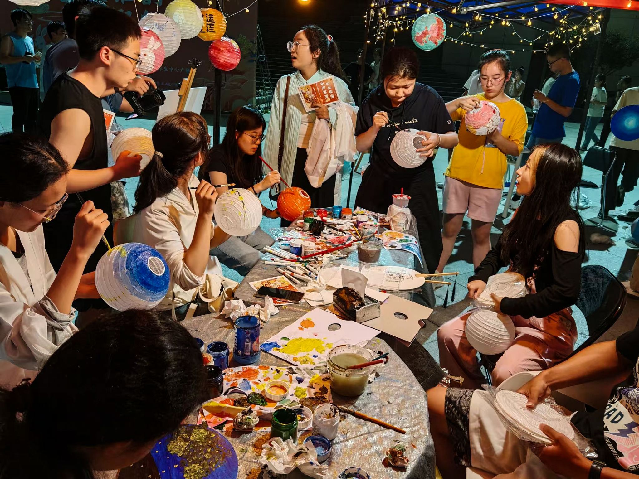 中秋情暖,欢乐满满。一年一度的中秋游园会如期开展,学院和校团委共同组织举办的“花灯邀明月”等一系列活动,更是为节日增添了无限生机。在活动现场,同学们可以亲手制作团扇和球形灯笼:团扇轻摇,绘上自己喜欢的图案,既美观实用,又增添了几分雅致和情趣;球形灯笼象征着团圆美满,同学们亲手组装,点亮灯火,仿佛将中秋的月光凝聚在其中。每一盏灯笼都映射出团聚的温馨,照亮了夜空,也照亮了每个人心中的温暖。除了花灯制作,游园会还精心安排了其他丰富多彩的活动和精彩纷呈的表演。花灯华服和月饼玩偶,每一个环节都为这个中秋之夜增添了一份独特的魅力,也为大家带来了愉悦的节日体验。