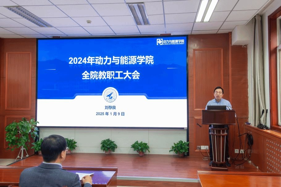 院长刘存良从人才培养、学生工作、师资队伍、科学研究和国际合作等几大方面对学院过去一年的工作进行了总结。在回顾肯定学院取得的丰硕成果的同时,刘存良院长也分方面指出了学院工作可提升的空间。他指出,2025年动力与能源学院仍将抢抓机遇、趁势而上,以更加开阔的视野、更加昂扬的斗志、更加宽广的胸怀、更加扎实的工作,为助力学校“127”近期目标和“天下工大、世界三航”远景目标贡献动能力量!