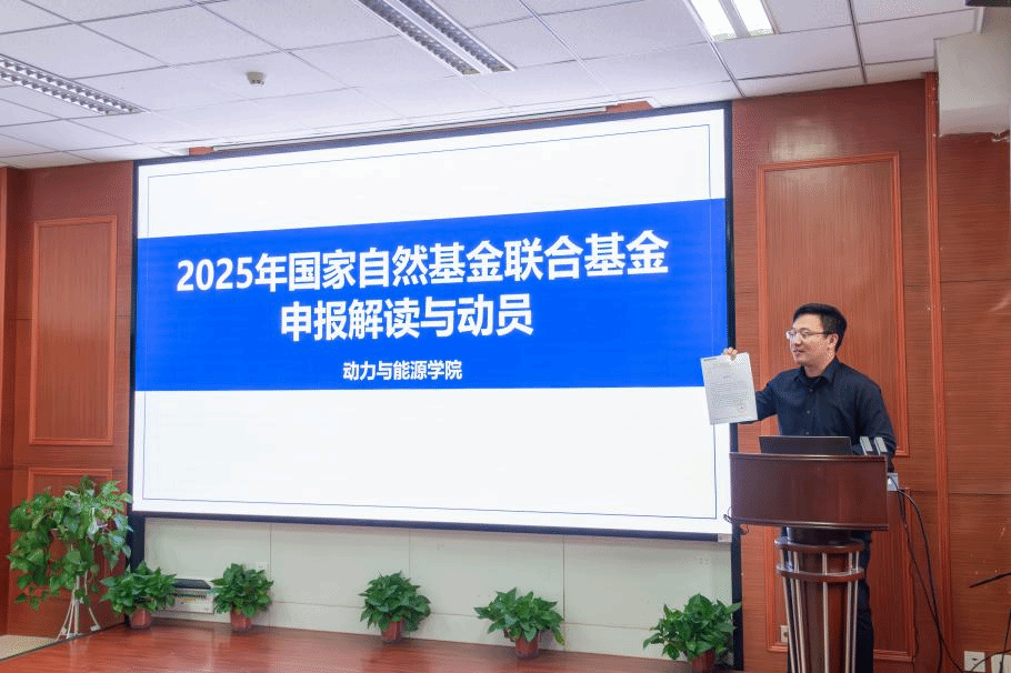 接下来,副院长高文君进行了2025年国家自然基金联合基金申报解读与动员。他从2024年项目申请资助情况、联合基金支持政策变化、2025申请工作安排等方面解读动员,号召学院青年教师凭国家战略领域发展的机遇、借行业成果井喷的东风、乘团队优势资源积累的快船、用A+学科和全国重点实验室的平台,实现快速成长成才!