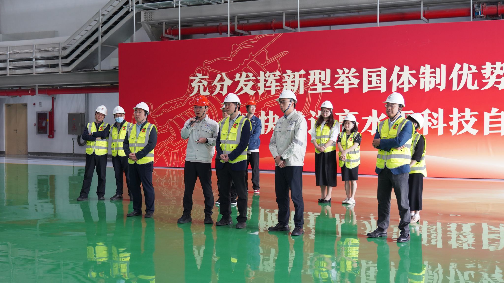 在中国重燃党委委员、副总经理余春华的陪同下,一行人首先参观了中国重燃的试验基地,深入了解重型燃气轮机的研发、生产及试验流程。技术人员详细介绍了燃气轮机的关键技术、工艺流程以及在能源领域的应用前景,使各位老师对重型燃气轮机工程有了更直观、全面的认识,并深刻感受到国产重型燃机从跟跑到并跑的跨越式发展。