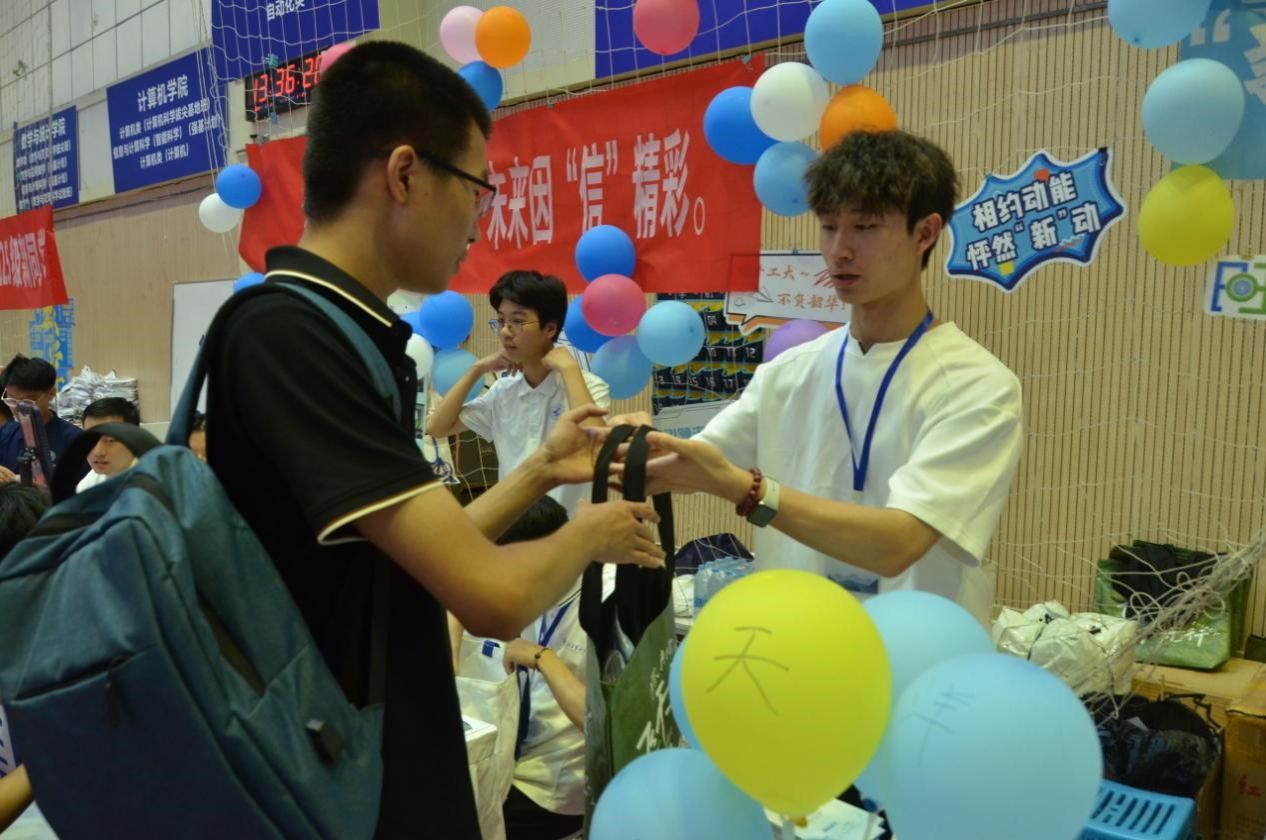 完成内场报到后,新生们来到外场。微风吹拂着写满憧憬的便笺,也拂过一张张天真灿烂的笑脸。“工大第一照” 的活动现场,新生们纷纷与吉祥物 “小涡”、学院立牌合影,在镜头前定格初入校园的雀跃。旁侧的盲盒区同样热闹,新生们轮流抽取,拆开时的惊喜笑容,与合影时的欢颜相映成趣。这些充满学院印记的互动,悄悄拉近了新生与无码动漫