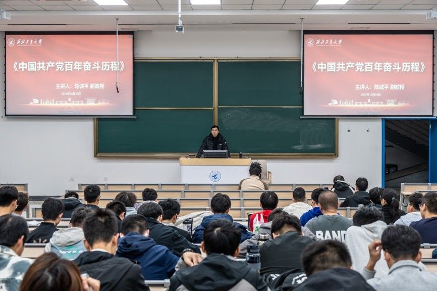 10月30日,陈诚平副教授以《中国共产党百年奋斗历程》为题,采用“时间轴”与“事件链”相结合的叙事逻辑,系统梳理了党从新民主主义革命时期到新时代改革发展的宏阔历史进程。他特别引入“脱贫攻坚伟大奇迹”“抗疫精神时代价值”等新时代案例,深刻揭示了百年大党永葆青春的成功密码。学员们在百年党史的波澜壮阔中汲取了信仰力量,在历史与现实的深刻对话中激发了强烈的时代使命感。