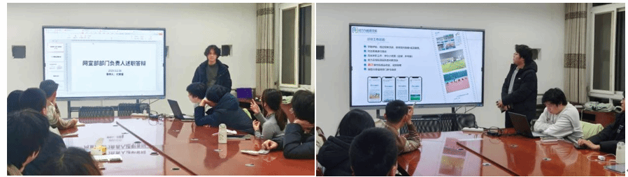 会上,各部门依次进行述职汇报,系统梳理本学期工作成果,深入反思存在问题,并就下一阶段工作规划展开交流:体育部成功举办学院首届田径运动会,并就后续体育赛事筹备作出展望;文艺部高质量推进中秋游园会、迎新晚会等品牌活动,同步完善内部人才培养机制;学竞科创部聚焦学业帮扶与双创支持,搭建跨院协作平台,开展竞赛指导与经验分享;志工权益部扎实推进志愿时长管理、权益问题收集与反馈,助力志愿服务规范化发展;网宣部持续提升宣传产出效率,优化工作流程,强化成员技能培训;办公组织部高效完成物资管理、团务推进及社会实践评优资料整理等基础保障任务。