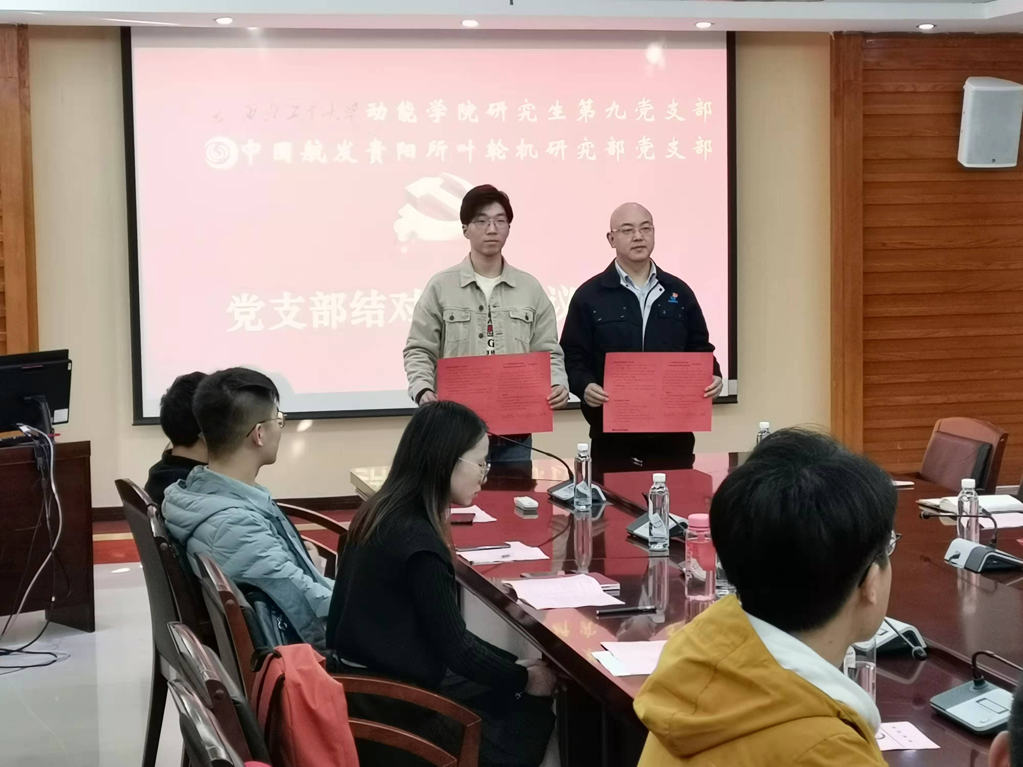 研究生第九党支部于贵阳所第一会议室进行了支部共建的启动仪式。贵阳所人力资源部部长马岚同志首先对贵阳航空发动机研究所的发展概况和行业现状进行了介绍,让同学们对研究所的历史发展和工作内容有了较为全面的认识。随后,叶轮机研究部党支部书记赵熙同志与无码动漫