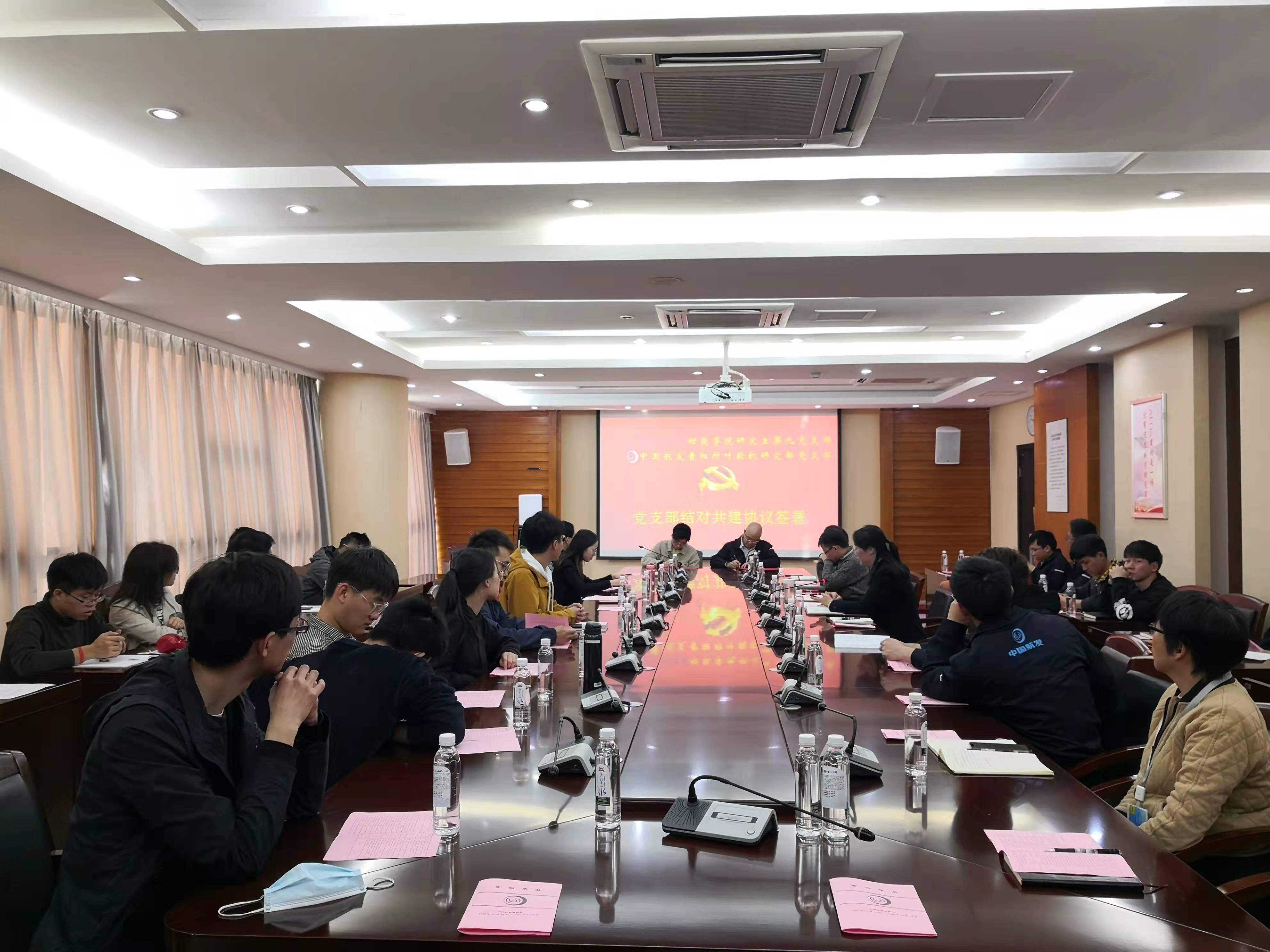 研究生第九党支部书记朱安冬分别就各自支部建设情况进行了介绍,九支部的建设经验受到了在座领导们的大力肯定。为达成党支部的长久共建关系,双方支部签署了《党支部结对共建协议》,为之后的共建活动开启了一个良好的开端。