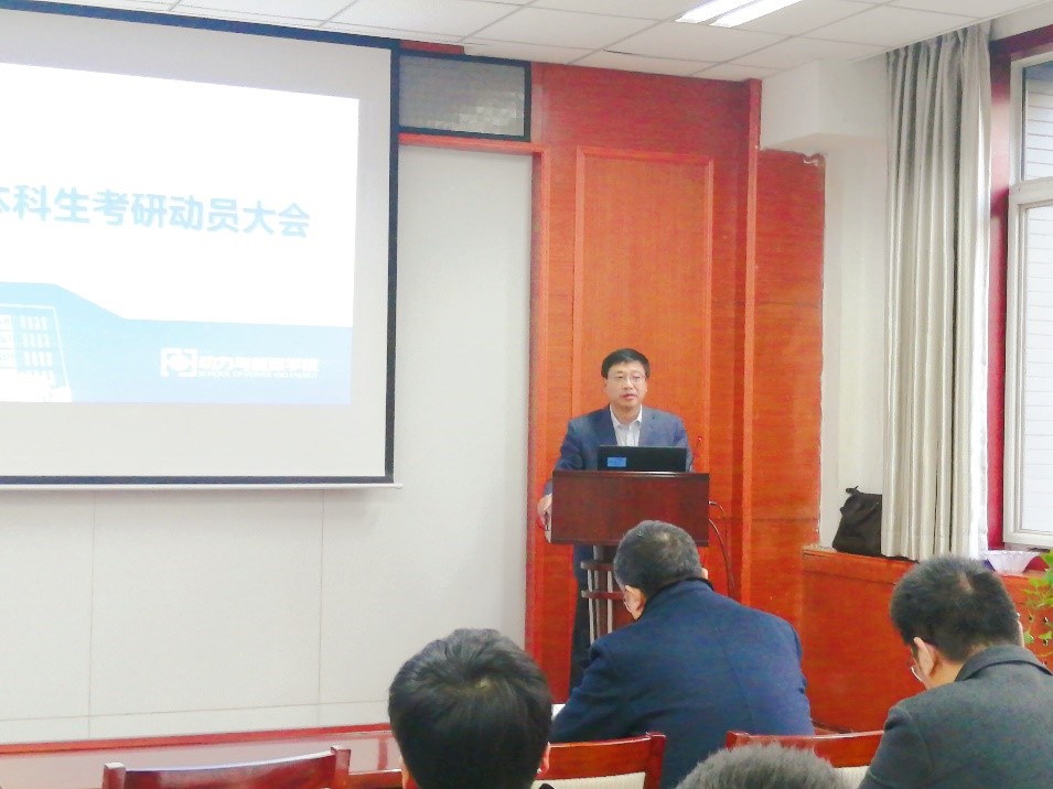 在创新楼255召开2022年考研动员会暨党委书记讲思政课,学院2018级本科生100余名有考研目标的同学参会,会议邀请到院长王占学教授、院党委书记闫育周参会,由院党委副书记刘海涌主持,帮助学生了解学院上研情况,鼓励学生在关键冲刺阶段有序开展考研复习。