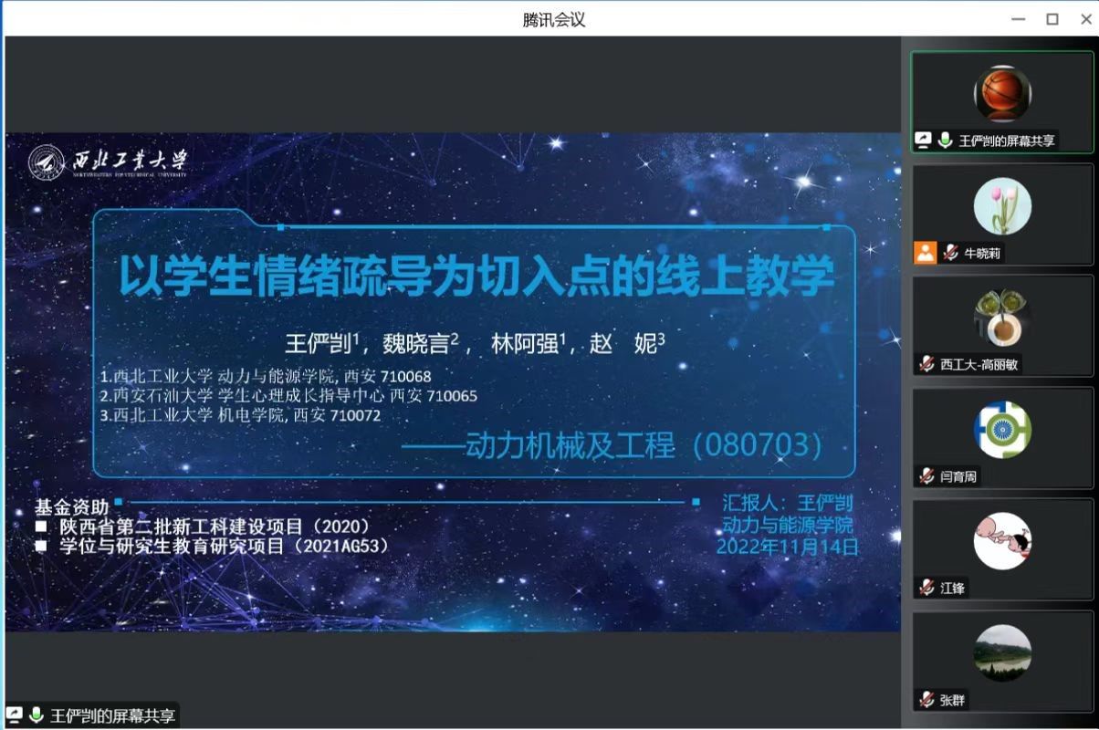 随后,王俨剀老师分享了以学生情绪疏导为切入点的线上教学,他抓住疫情期间校园封控的机会,进行了线上开展课程思政的尝试。他讲到应该以学生的特点为中心和出发点,进而提出3种举措尝试并建立5个实施原则。王老师丰富的线上课程思政经验对老师们在学生培养上具有一定的借鉴意义。