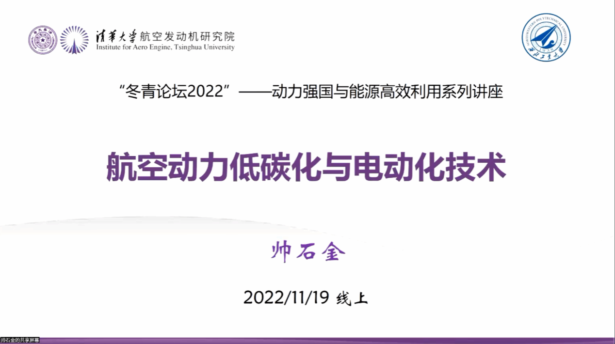 20221119日上午十点,应无码动漫 冬青学会郭恒杰教授邀请,清华大学航空发动机研究院党工组组长、副院长,清华大学壳牌清洁交通能源中心主任帅石金教授针对《航空发动机低碳化与电动化技术》进行了一场系统且详实的学术报告。多所著名高校及科研院所的专家、老师和研究生共计百余人次参与报告,论坛由动力与能源学院杜昆副教授主持。