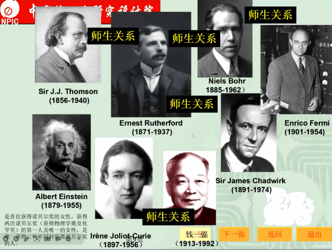 接下来孙寿华研究员深入讲解了核反应机理,强调核裂变基本原理及其与物理和化学反应的本质区别,进一步讲述了核裂变在武器装备、能源利用等领域的应用。期间讲述了我国著名科学家钱三强师从世界著名科学家居里夫人开始核物理研究,回国后为我国核事业的发展做出巨大贡献,并呼吁参会的学生继承并弘扬钱三强先生矢志报国的精神,为我国核能及动力与能源事业的发展贡献力量。