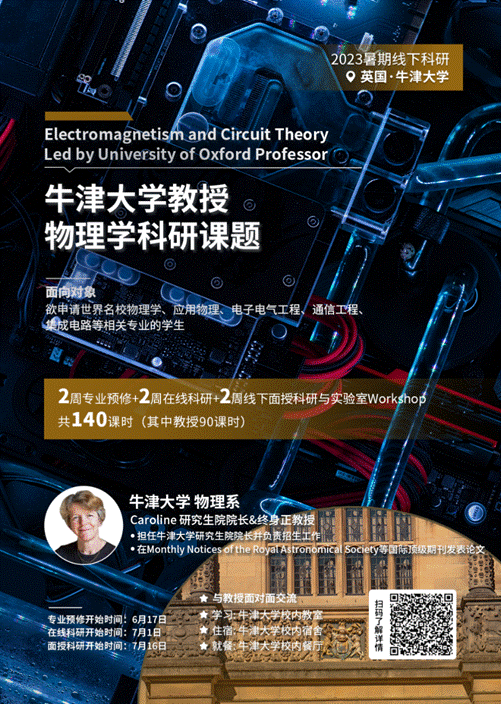 【导师介绍】:Caroline导师现任牛津大学物理学终身正教授,她在法国获得博士学位后,在英国和美国进行了博士后研究工作。 2012年,正式加入牛津大学,自2018年开始,担任牛津大学研究生院院长并负责招生工作。 并担任上海交通大学客座教授,曾任普林斯顿大学客座教授,巴黎第六大学教授等。导师在校教授包括电磁学在内的多门物理课程,目前在Monthly Notices of the Royal Astronomical Society等国际顶级学术SCI期刊发表论文超过84篇,总引用量超过2500次。