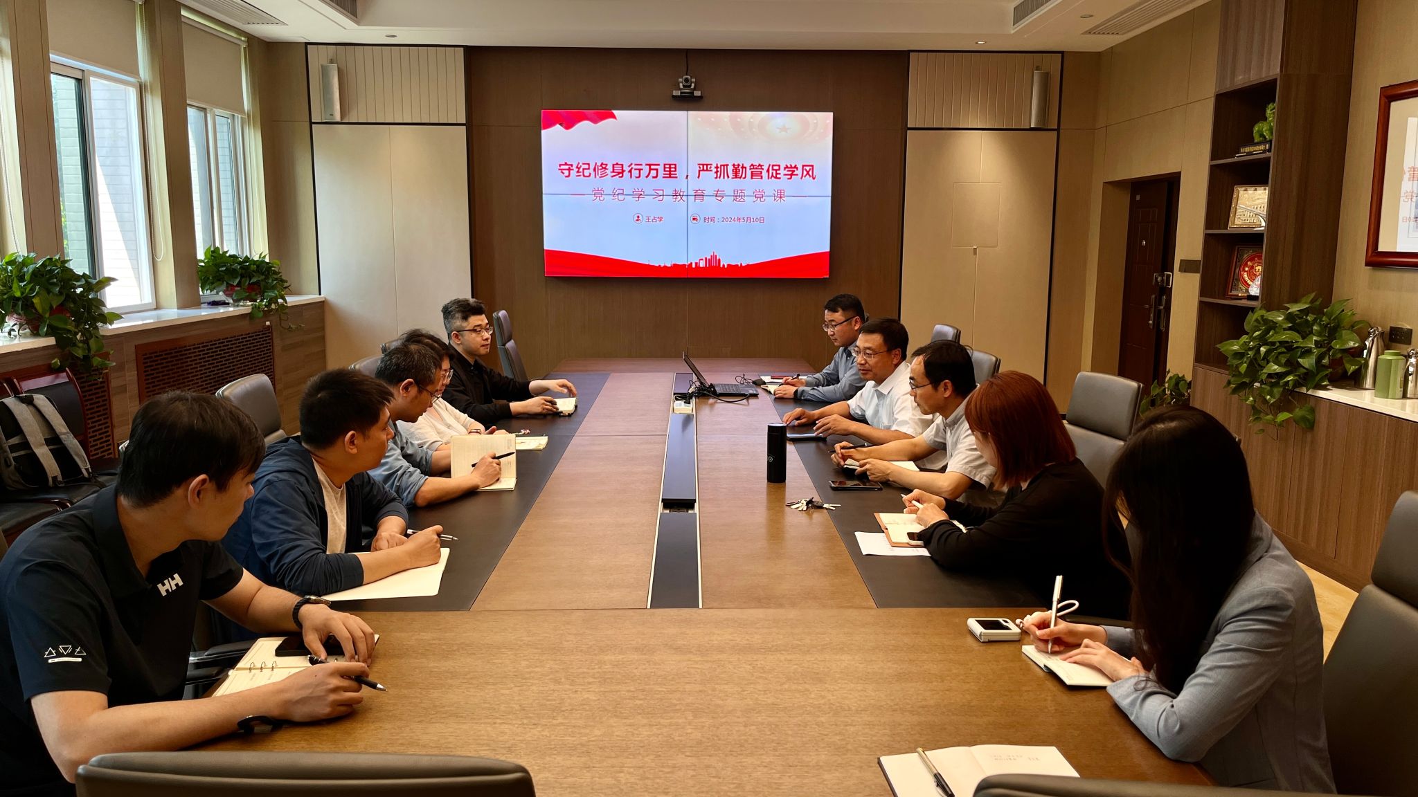 王占学围绕习近平总书记关于党纪学习教育的重要讲话和重要指示精神,聚焦深刻认识开展党纪学习教育的重大意义和目标要求做了深入讲解。他讲到,严明的纪律,是事业发展的重要保障,严守纪律规矩,是做忠诚干净担当好党员、干部的内在要求。要自觉做到知敬畏、存戒惧、守底线,营造风清气正的良好工作氛围,使党纪学习教育每项措施都成为促进工作的有效举措。