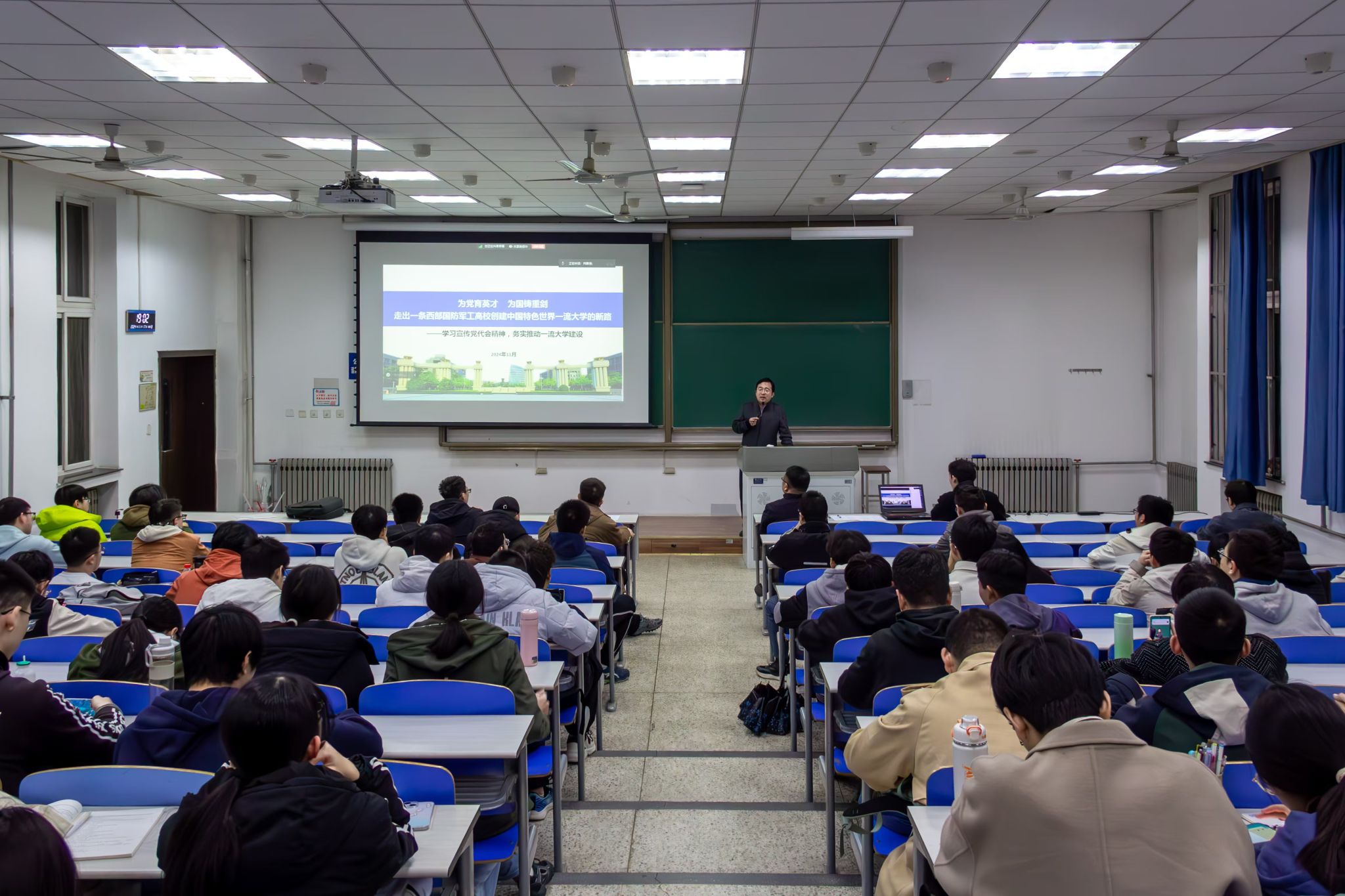 刘存良院长围绕党的二十届三中全会、全国教育大会对高校提出的新要求新任务,聚焦学校第十四次党代会确定的“天下工大、世界三航”远景目标、新“三步走”战略构想,进行了专题讲解。随后,他重点解读了习近平总书记关于教育、科技、人才的重要论述。他谈到,大学是科技第一生产力、人才第一资源、创新第一动力、高质量发展第一要务的结合点。教育发展、科技创新、人才培养三者是相辅相成的,西工大作为国防军工特色的高校、高等教育的第一方阵和国家战略科技力量,在全国高校的格局中地位重要、作用特殊。作为西工大的学子,同学们要给自己合理定位、明确目标、努力奋斗!