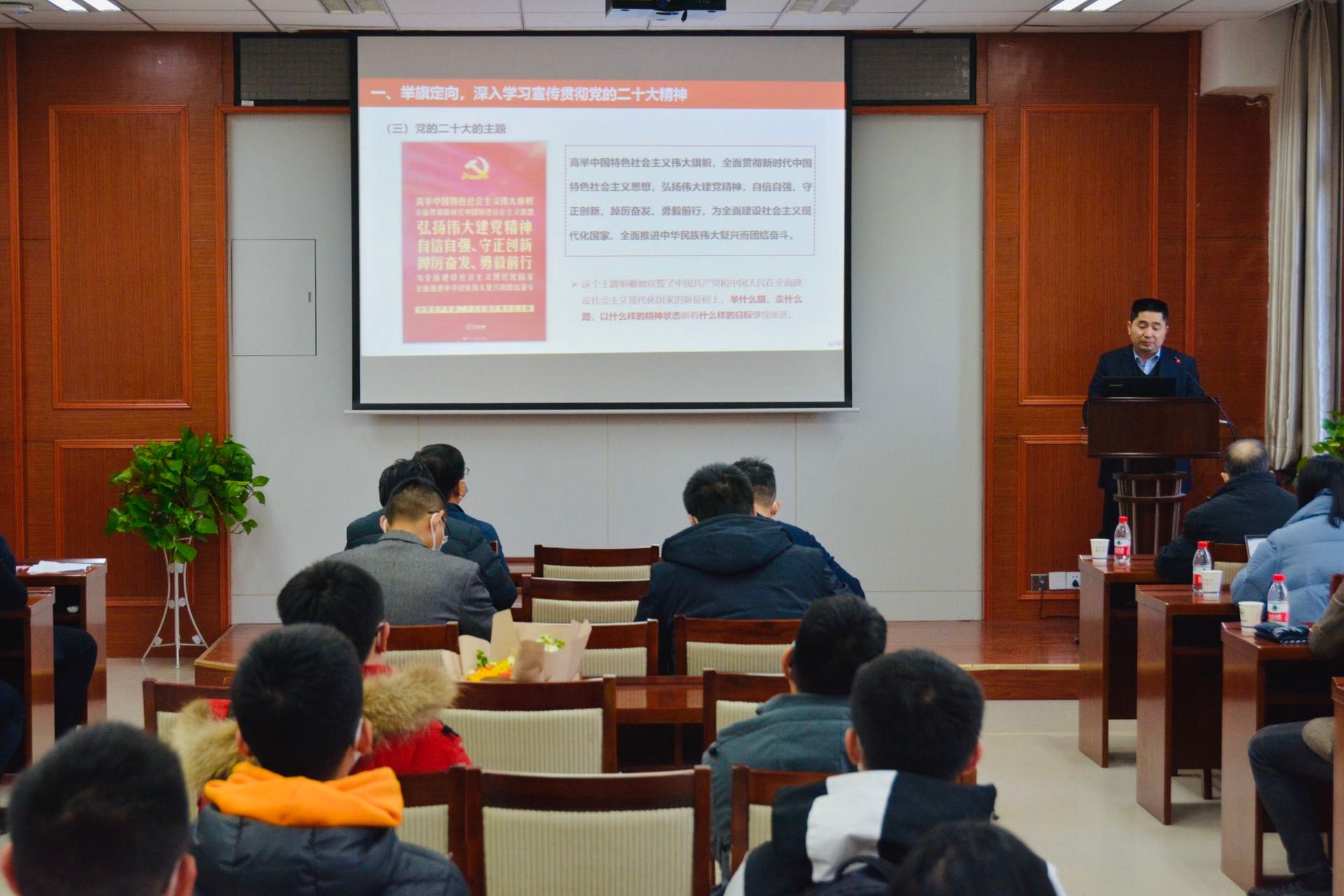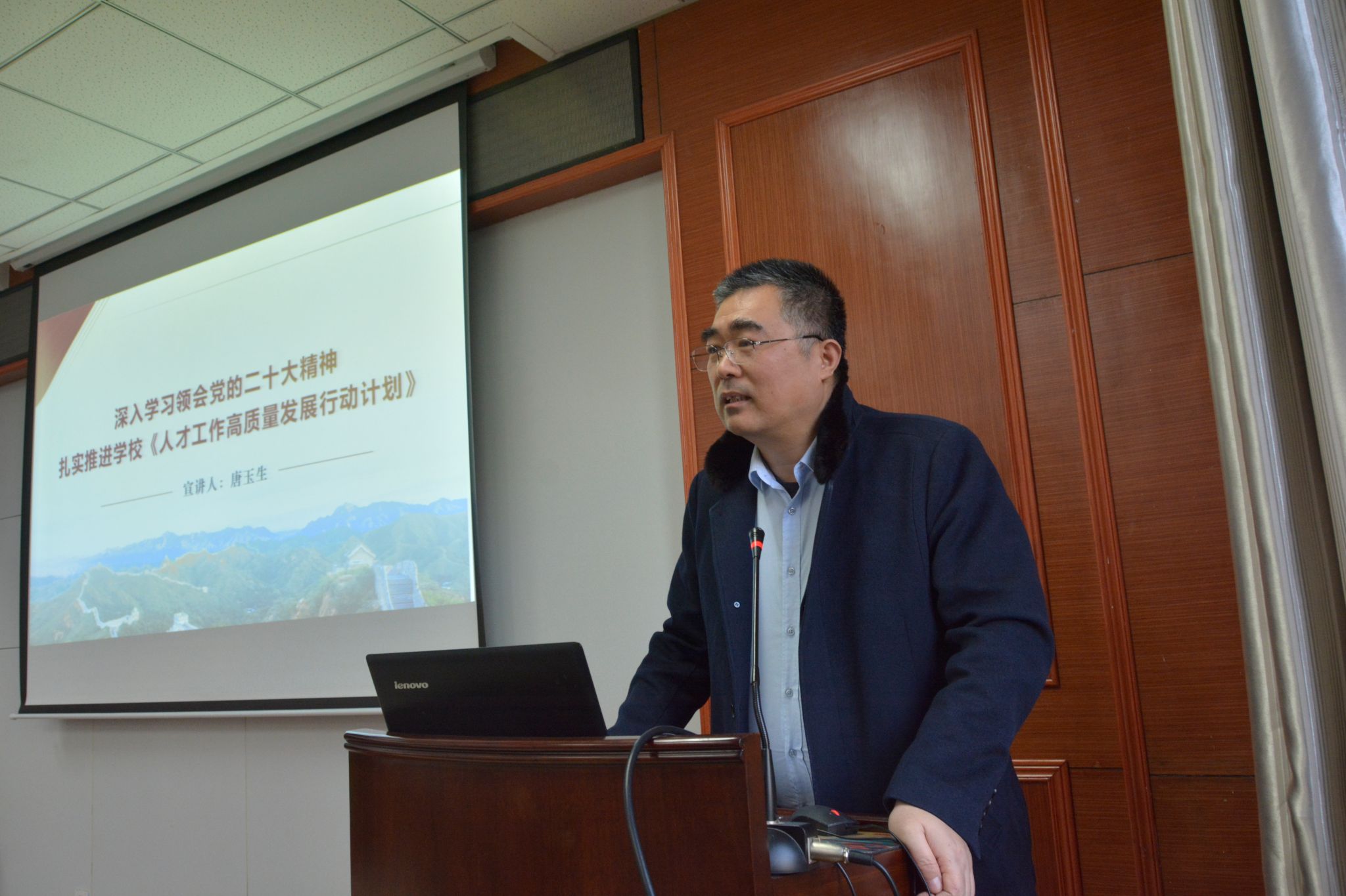 校宣讲团成员、人事处处长唐玉生为无码动漫 师生宣讲党的二十大精神
